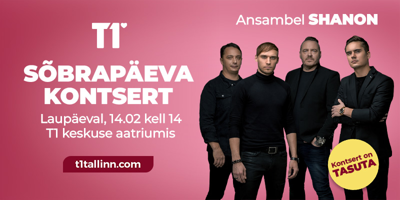 Sõbrapäeva kontsert 14. veebruaril kell 14.00 T1 keskuse aatriumis – tule ja naudi muusikat koos kallitega. Kontsert on kõigile tasuta!