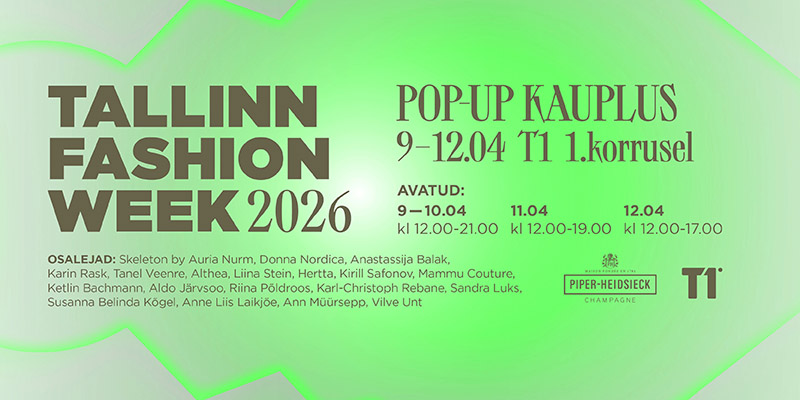 T1 keskuses on Tallinn Fashion Weeki raames 9. – 12. aprillil on moenädalal osalevate, aga ka mitte-osalevate disainerite pop-up kauplus, kus saab soetada kõige värskemat hooaja moeloomingut.